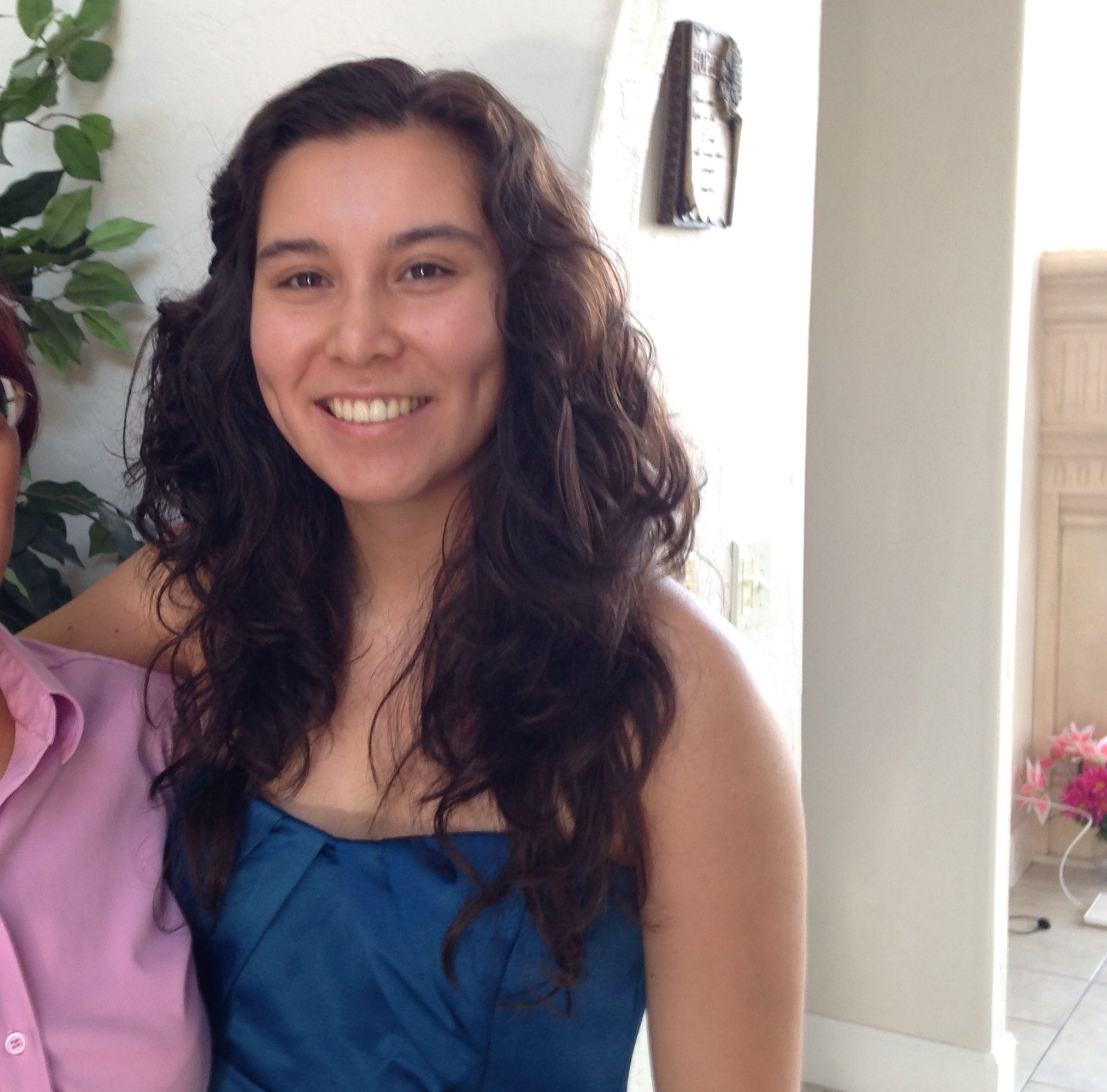 A playful half updo for layered waves.